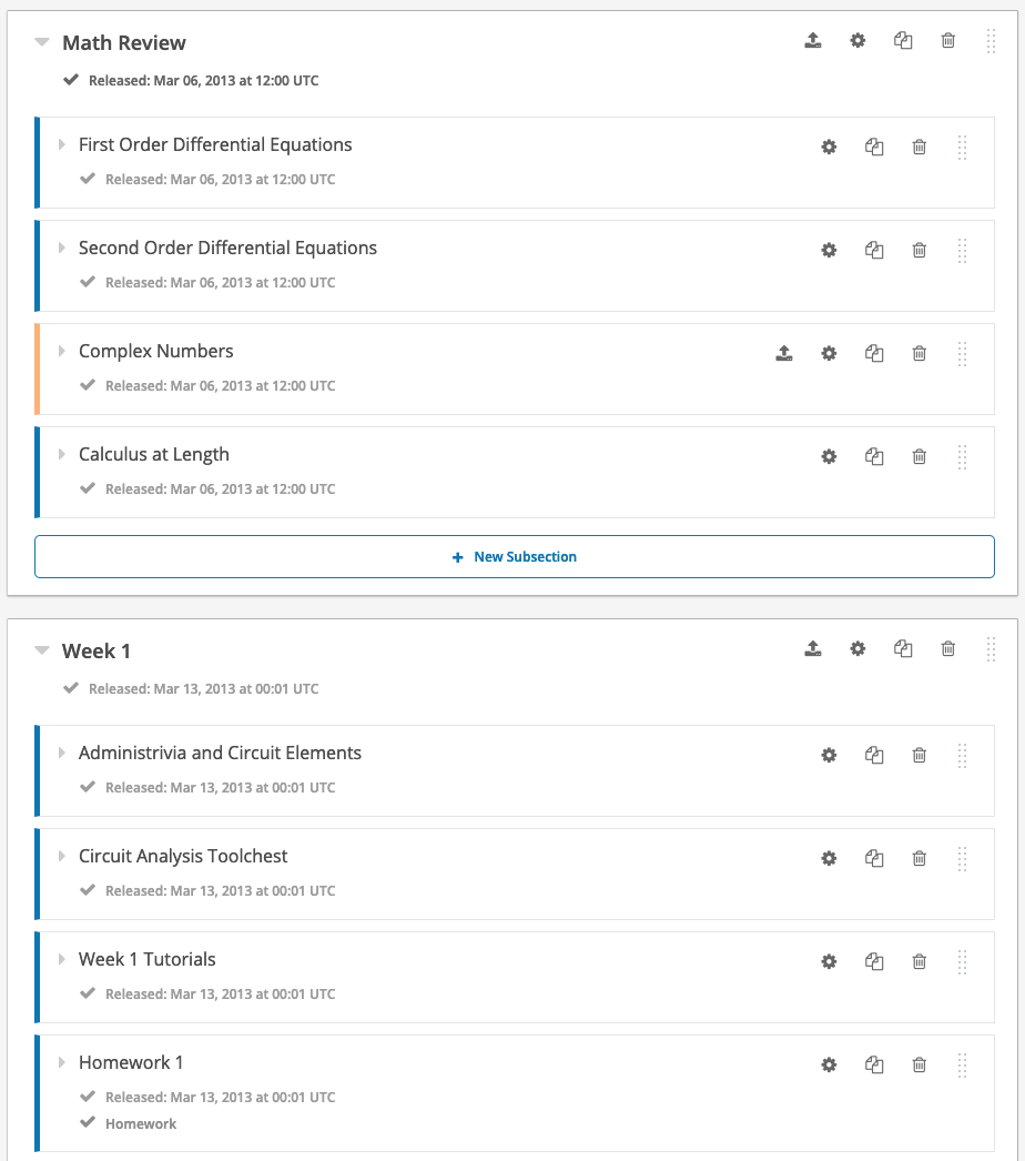 Составьте примерную структуру курса и наполняйте её содержимым с любого места. С помощью перетаскивания вы сможете быстро перегруппировать элементы курса.